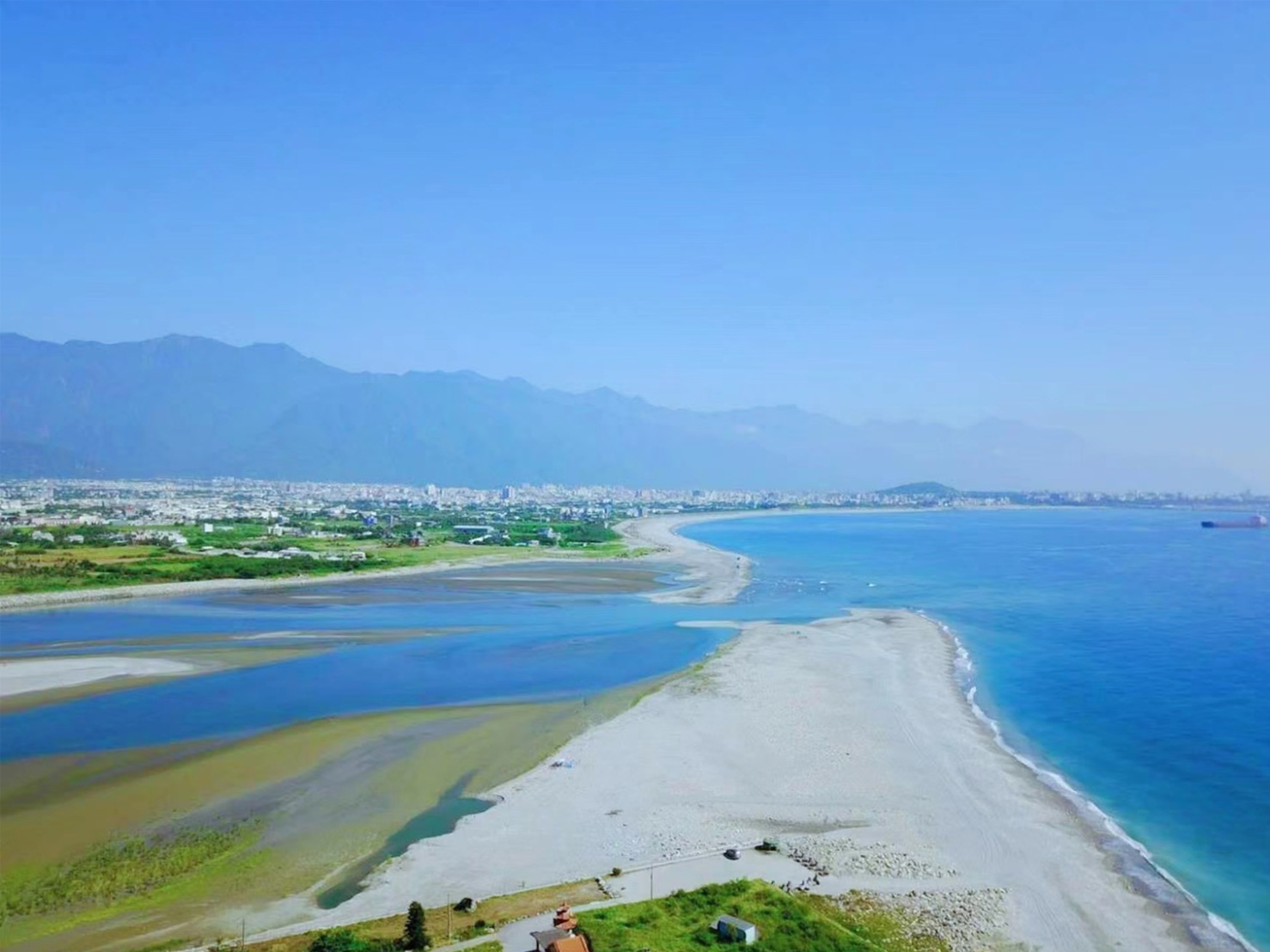 「海中天」是花蓮觀賞海景的絕佳之處,270度的遼闊視野,浩瀚的太平洋,花蓮溪出海口、綿延的中央山脈、美崙山、海上商船與漁船點綴的花蓮港都盡入眼簾。