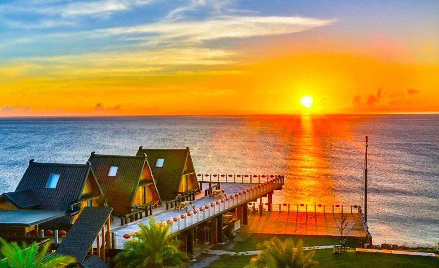 在「海中天」的海灣上,您可以看到太陽慢慢地從海平面上升起,漸漸地染紅了整片天空。