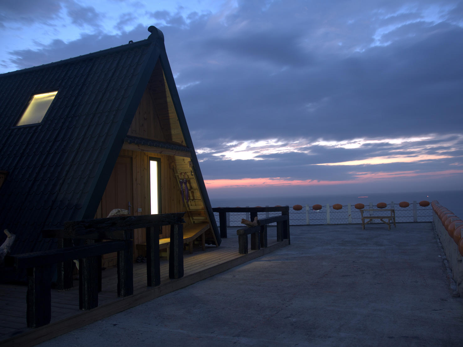 日暮中的小木屋