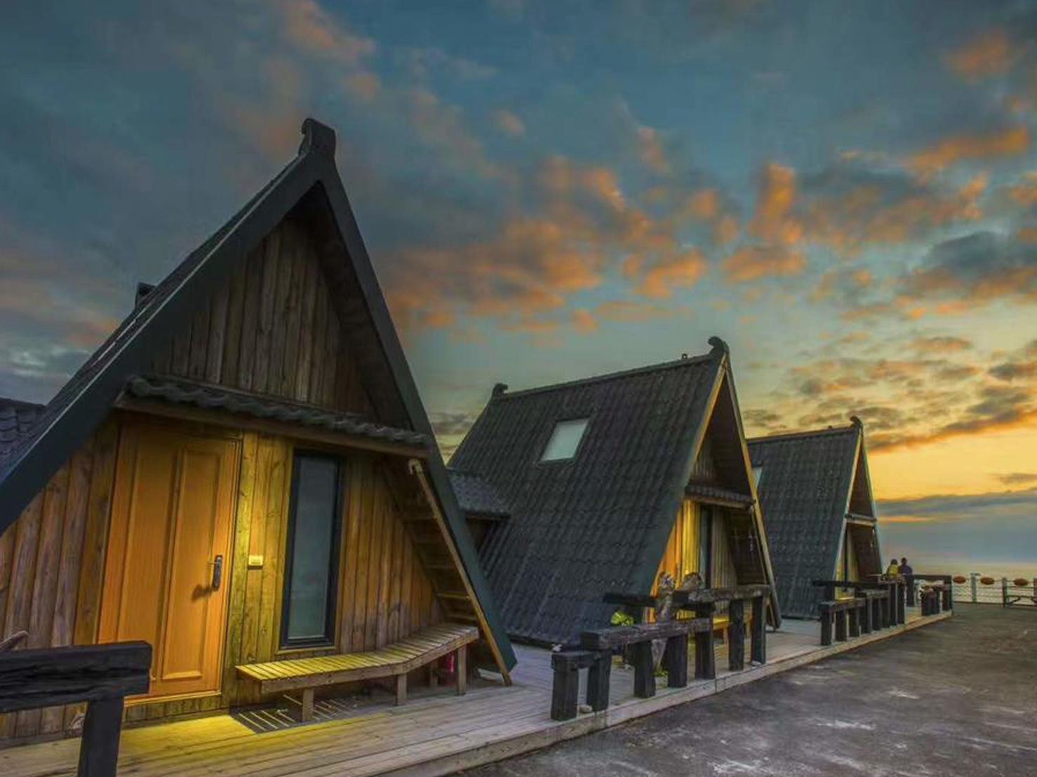 霞光中的小木屋